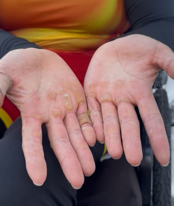 除了数不清的老茧,她的腹部被绑带磨出了一大块疤,皮肉渗血、化脓,如今已经成了一道发黑的印记,即便如此,她也没想放弃。当她捧回两枚残运会银牌,拿下全国锦标赛冠军后,家人的态度终于有了转变。